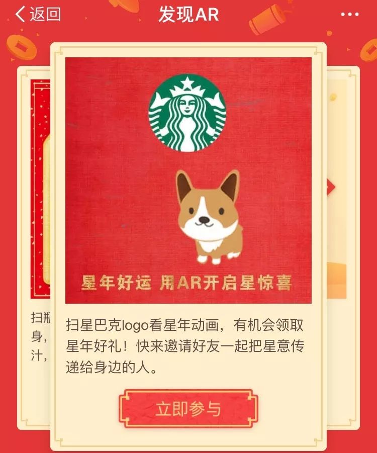 今年春节,星巴克和支付宝“扫福”活动的AR合作。