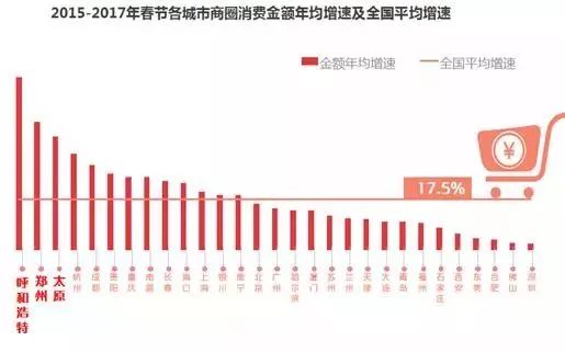 通过跟踪分析银联系统近三年(2015-2017年)春节期间境内逾150个知名商圈及境外160多个国家和地区出境游的消费交易数据发现,二三线城市居民的消费能力大幅提升,地区间差异逐步缩小,消费市场结构与区域协调发展并进。