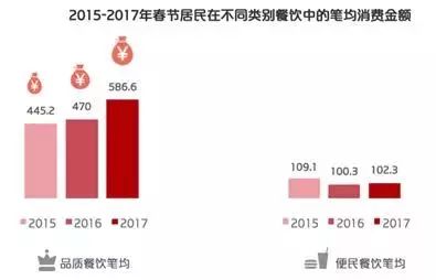 随着居民收入的不断提高,2018年春节,品质餐饮服务的笔均交易金额将进一步保持10%左右的增长态势。