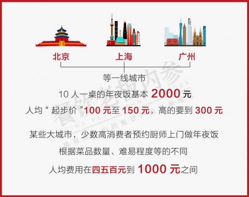 ⑨ “私人订制”等个性化需求突出。江苏、浙江、广东等地餐饮企业携手第三方餐饮平台推出年夜饭配送服务,上海一些酒店推出“外带”年夜饭让市民在家即能享受到厨师的“私人订制”服务,天津一些餐饮平台提供的上门制作年夜饭服务供不应求。