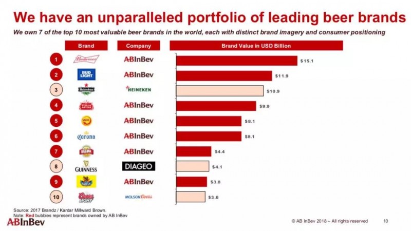 目前,百威英博拥有500个品牌,其中19个啤酒品牌的零售额超过10亿美元。BrandZ十大最具价值啤酒品牌中的7个属于百威英博。对于这个“啤酒王国”而言,什么才是他们的业务发展重点?