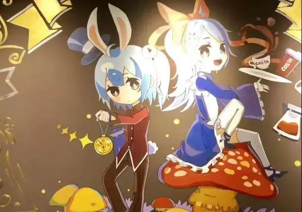 这面手绘墙是以“爱丽丝”为主题绘制的!