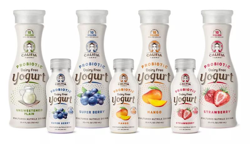 Califia Farms于近期正式推出新系列的无乳制品益生菌酸奶饮料,拥有四种口味,包括草莓、巴西莓、芒果和无添加糖原味,并分为8盎司单份装和25.4盎司多份装(原味只有25.4盎司装),两种规格零售价分别为2.69美元和5.49美元。以扁桃仁和椰奶作为基质进行“批量发酵”,每一种口味都是非转基因、无乳制品、无谷蛋白以及素食的。因此根据公司的介绍,益生菌是“整体饮料的一部分,而不是在发酵结束后单纯为了强化而添加的”。