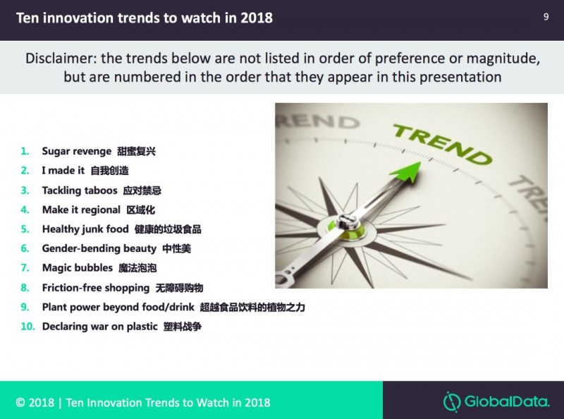GlobalData-2018影响食品饮料创新和营销的10大趋势,