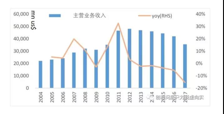 从部分数据来看,相比曾经的巅峰时期,近几年可乐的销售收入的确在逐步下滑。以可口可乐为例,2017 年全年的营收下跌 15%,差不多是近几年最大的跌幅。