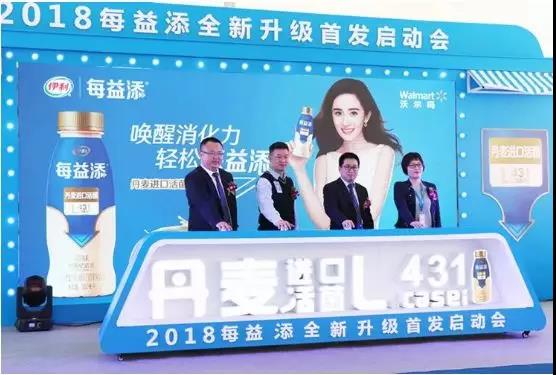 2018年3月11日,在深圳沃尔玛,伊利每益添召开了一场“产品升级暨新品首发发布会”。会上,每益添发布了一款新品,从菌种、菌数、包装、口味等多个维度进行了升级和创新。