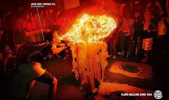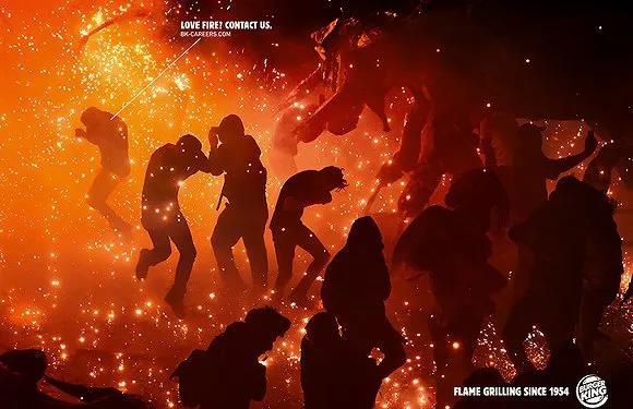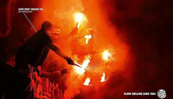 当然像汉堡王这么做还是很大胆调皮了。如果你回顾之前的创意案例,会发现它总是用“玩火”这个梗来宣传自家汉堡“真正火烤”的个性。