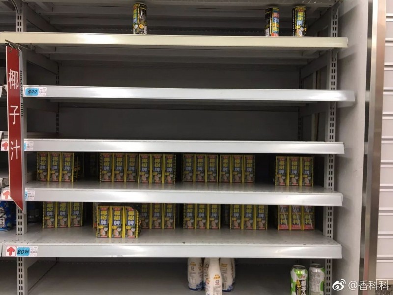 今年过年前,有网友上传某南方大型超市的货架,椰树牌椰汁作为年货之一,很快就销售一空。