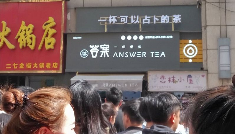 不久前,这家叫“答案茶”的奶茶店突然蹿红,据其官方微博显示,从1月14日开业截止3月13日,2个月时间签约了237家加盟商,20多条短视频在抖音获赞110.5万,近一段时间更是因排长队受到关注。