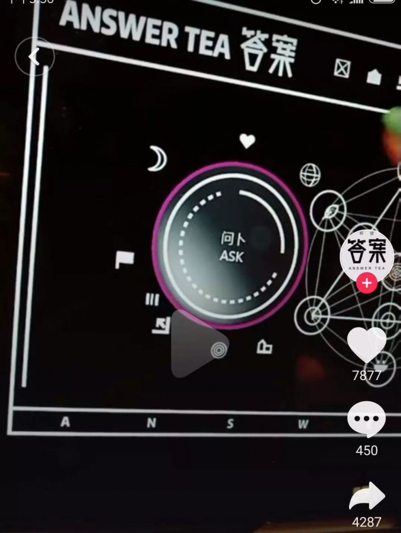 答案茶的“占卜”形式恰好就是抓住了消费者对于解答悬念、预测未来、寻找真相的好奇心,从用户思维的角度设计创意环节。