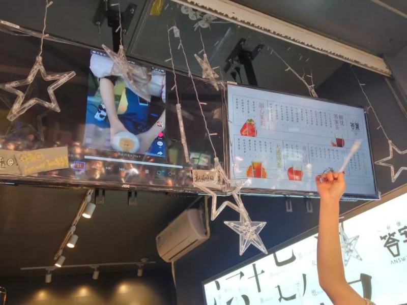 ▲大屏幕一边播放的抖音视频,一边是菜单,工作人员在不断讲解