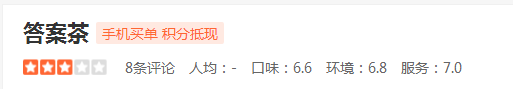 至于奶茶是否好喝,点评网站上为数不多的评论里,是这样呈现的: