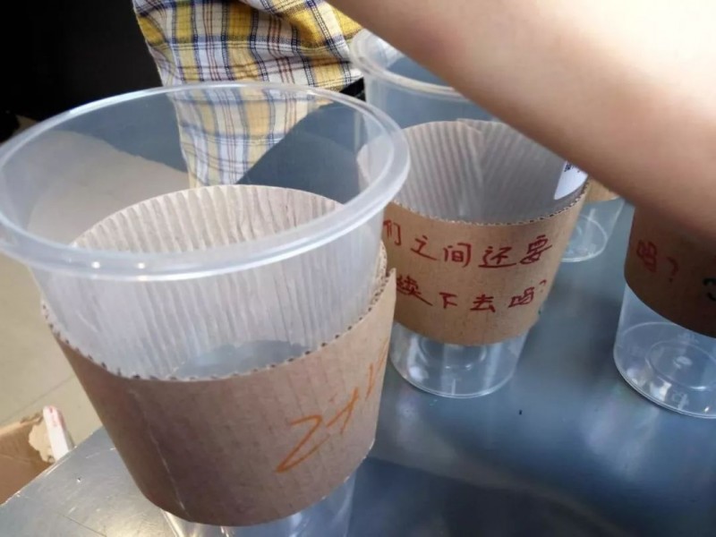 不时有新的顾客到收银台,提前取走杯套写好问题,几乎都是一次拿走3、4个杯套。