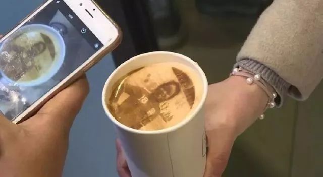 扫码支付后,机器人转身为其制作奶茶,一分钟左右,一杯香飘四溢的原味奶茶就送到了取货窗口,顾客用手机自拍了张照片,把奶茶放入自助拉花机上,瞬间自己的图像就出现在奶茶杯面上,体验酷极了!