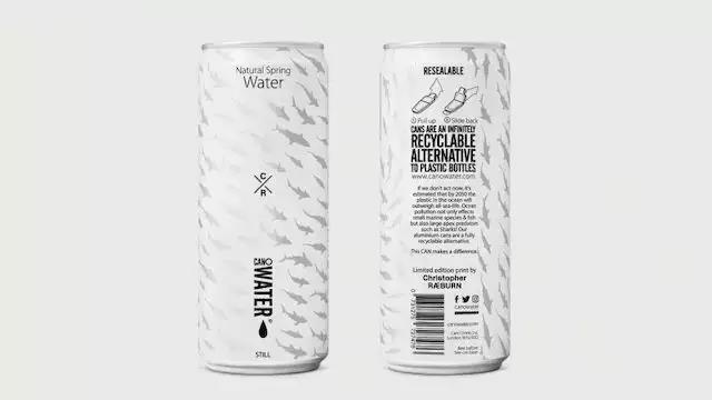 伦敦动物园协会联手罐装水公司 CanO Water 和时尚设计师 Christopher Raeburn,为伦敦动物园设计了一款特别的罐装水。它的铝制瓶上印着姿态各异的鲨鱼 logo,还写着:这个罐子是永久的,它是可替代塑料瓶的易回收材料。