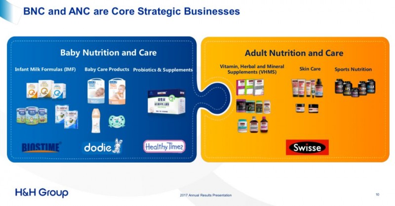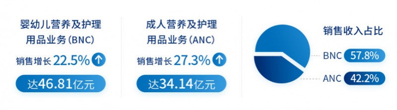 目前,该集团的两大业务分别为:婴幼儿营养及护理用品板块(BNC)和成人营养及护理用品板块(ANC)。
