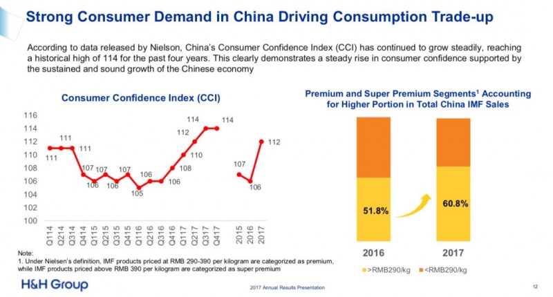 这家公司在一份通报中指出,2017年,集团高端与超高端婴幼儿配方奶粉系列销售势头强劲,同比增长18.5%。整体而言,据健合集团首席财务官王亦东在会上透露,健合的奶粉业务在2017年增长了16%,“一方面来自合生元奶粉高端和超高端品牌的增长,另一方面来自Healthy Times的增长”。