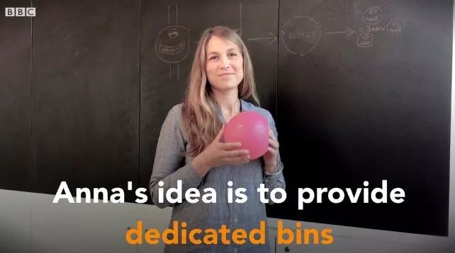 安娜开始收集嚼过的口香糖,这并不是一件容易的事情。她发明了一个粉红色、泡泡形状的Gumdrop口香糖回收箱,并且这些箱子全部是由回收的口香糖制成。安娜还在垃圾箱旁附上说明称,回收的口香糖将被废物利用,制作成新的物品。