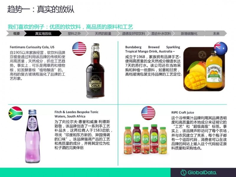 创新产品举例:优质软饮料、高品质的原料和工艺