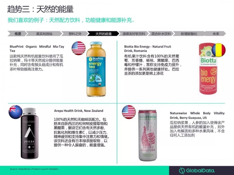创新产品举例:天然配方饮料,功能健康和能量补充