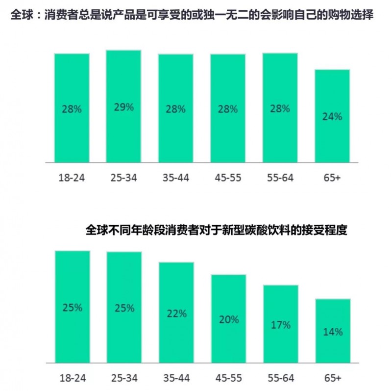 ▲ 全球不同年龄段消费者对于新型碳酸饮料的接受程度(数据来源:GlobalData)