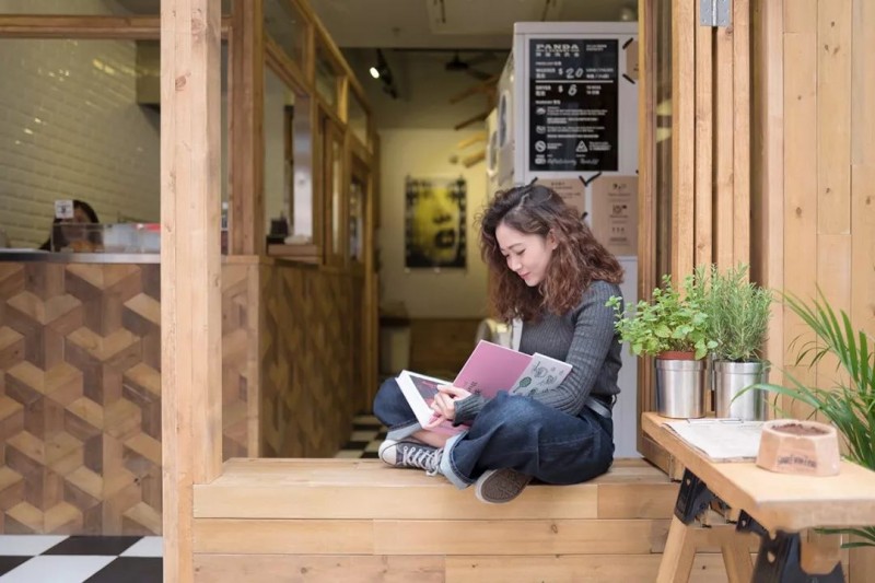 从对面的街道远眺半开放式的木屋,却不禁令人联想起那些浪漫喜剧电影情节里,男女主角在洗衣店内在等待期间相遇而产生情愫的一刻。