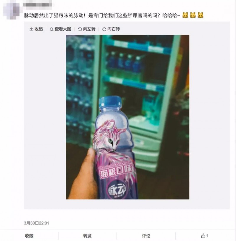 铲屎官们想知道主子们爱吃的猫粮是什么味吗?脉动选用最受猫咪们欢迎的食品口味,制成美味可口的猫粮口味脉动,让你更真切的感受主子们口中的美食味道!