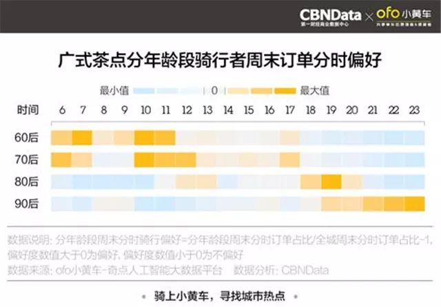 数据显示,60后、70后多偏爱吃“早茶”,10点-11点是他们吃茶点的高峰期;而90后多偏爱吃“晚茶”,晚上9点-11点是他们吃茶点的高峰期。