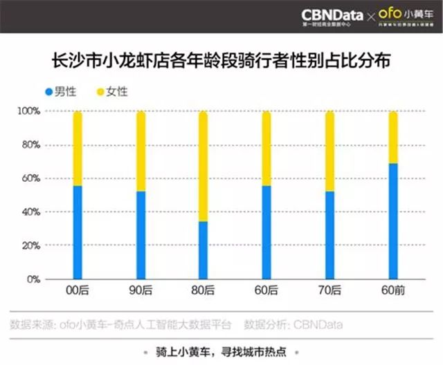 从小龙虾消费出行的人群结构看,嗜虾一族主要以80、90后的年轻人为主力军,其中90后骑行者遥遥领先,在主流品牌店中的出行占比均超51%。