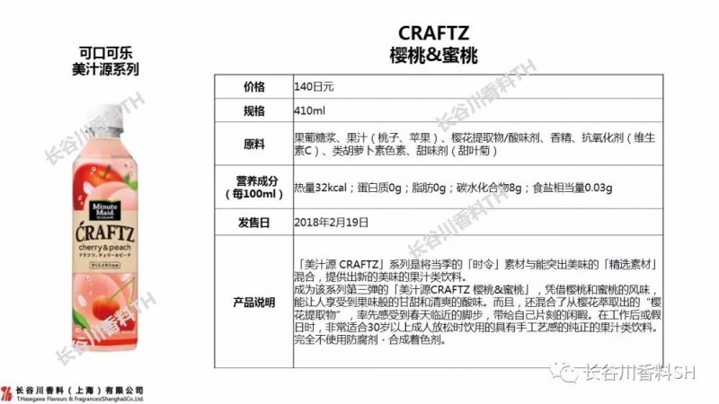 美汁源的CRAFTZ系列是将当季的时令素材制成美味的果汁类饮料。此款作为该系列的第三弹产品,将樱桃和蜜桃混合,并加入了樱花提取物,让人深刻感受到温暖春意的饮品。