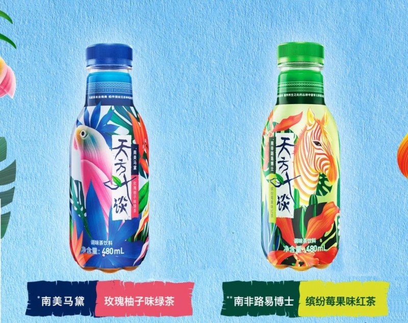 天方叶谈是达能2018年推出的一款全新口味的调味茶饮料,产品选用南非路易波士茶及南美马黛茶等异域茶种,现上市有两个口味。产品包装采用时尚的插画风,品牌故事十足。