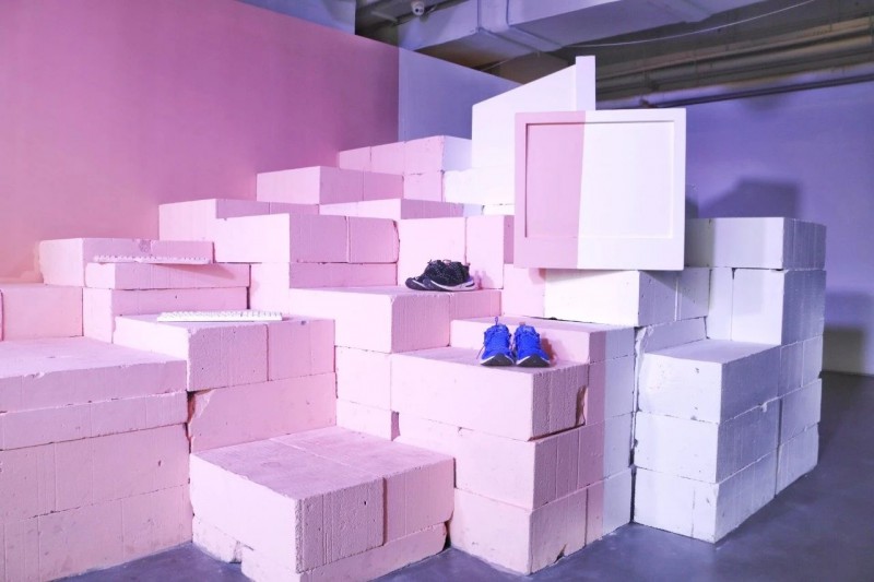 走上二楼首先引入眼帘的是一个印有 Adidas 标志的玻璃门,进去后一道粉墙“扑面而来”,小编的少女心啊!粉嫩的完全不像以往 Adidas 的画风!