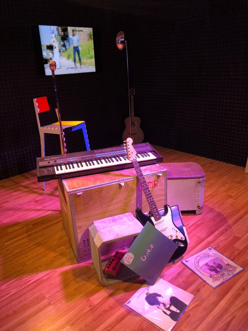 Sounds GOOD !:第二个房间画风突转,仿佛来到了另一个世界。贝斯、键盘、麦克风、循环播放的MV......还有一整面墙的歌手海报,似乎即将会进行一场live show!