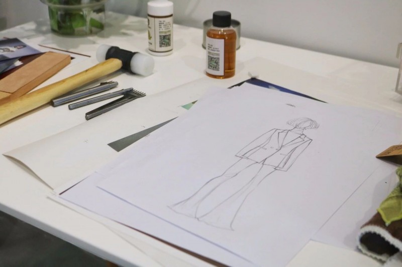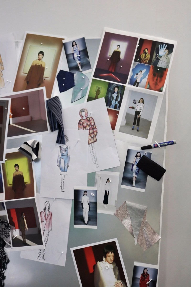 摄影棚旁边有一个小房间,里面的布置类似设计师的工作间,放着设计图纸还有布料的桌子和已经裁剪出来的成品......走近看到衣架上的衣服再一次怀疑这还是那个印象中卖运动产品 Adidas 么吗?难道不是某个时装品牌?