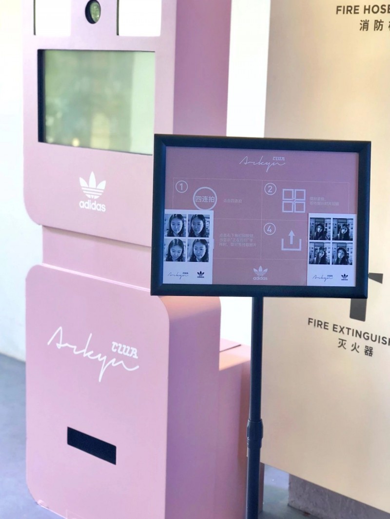 一楼多了一辆装有 Adidas 产品的小巴车,旁边有工作人员向你介绍这次的活动,之后会为你带上一个印有二维码的小手环(凭手环可以换取一杯咖啡)然后你就可以去二楼疯狂的拍拍拍啦!