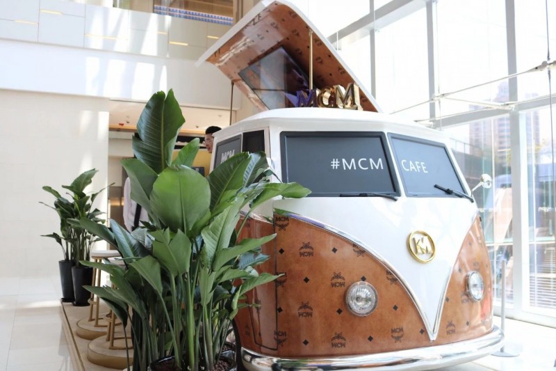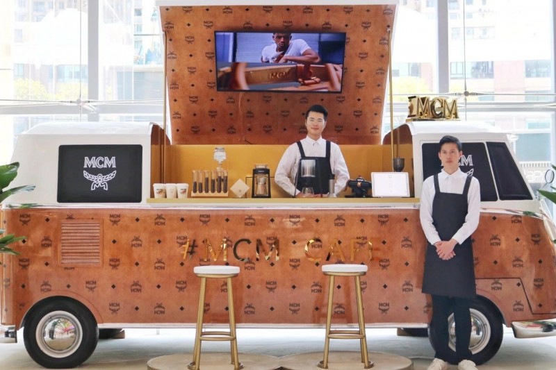 源于德国的奢侈品时装品牌 MCM 的咖啡快闪形式是将一台复古巴士开进了环贸iapm商场一楼,停泊在了店面门口。