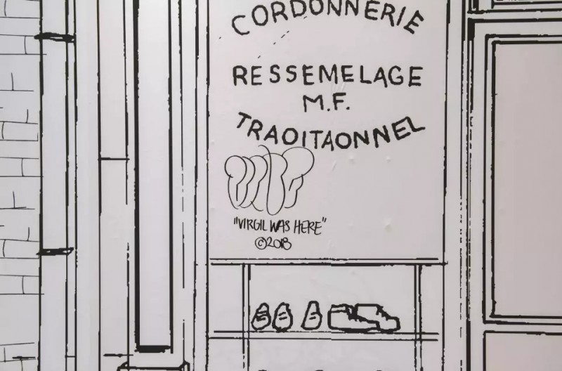 整个场地以手绘的巴黎街景为装饰,非常浪漫,符合升级后 Off-White 的风格,又不失“街头”(毕竟是街景),牢牢紧抓着品牌的根源。