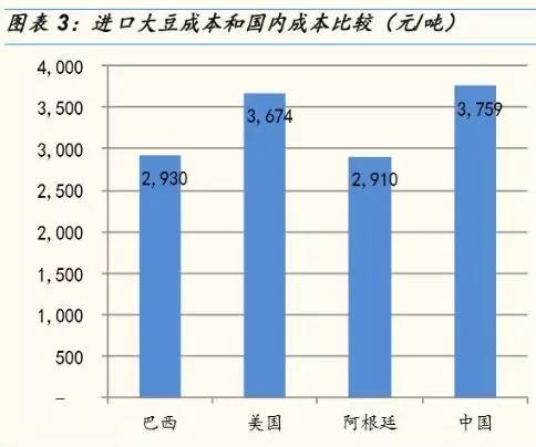 如果按照巴西、阿根廷 3%的进口税率,美国25%的进口税率,叠加10%的增值税,1:6.3的税率的话,则美国2017年的进口成本约为3673元/吨,而2017年中国大豆期货均价约为3759元/吨,美国大豆的价格优势被明显削弱。不过鉴于大豆在美国对华出口商品的重要性,中美双方或还有进一步协商的余地。