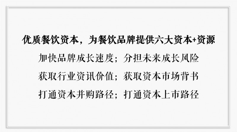对餐企来说,拿到优质资本,餐饮BOSS发展企业可以更安定更从容。面对餐饮激烈竞争,获得融资的餐饮品牌可以不必急于赚钱,而是把继续拓展用户群、提供满足用户需求的产品、细化业务架构等作为重点,去探索更多的中长期可能。