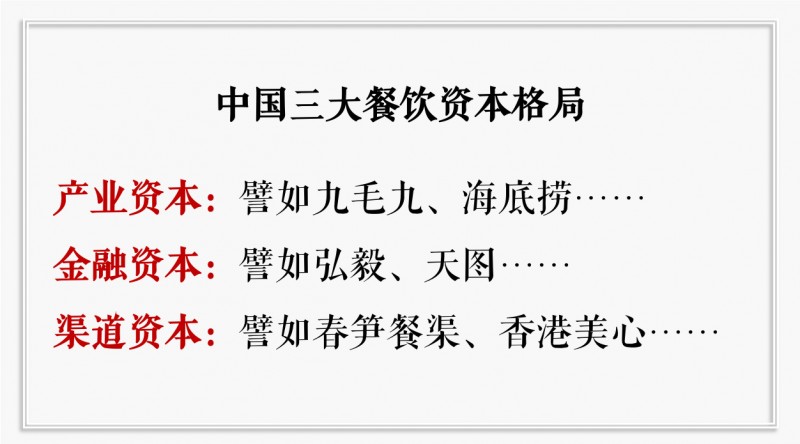 如果清楚一些餐饮创投历史,是不是可以理解当前不全对的一些“潜规则”:IDG、弘毅、天图、红杉,在广州,跟着九毛九走。譬如遇见小面、卤味研究所融资,是管毅宏的朋友圈。在深圳跟着乐凯撒走。譬如义泰昌、大弗兰,是陈琳的朋友圈。高翎资本,在北京乃至全国,跟着海底捞走,是张勇的朋友圈。