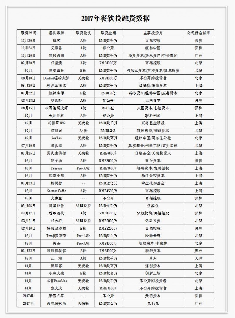 春笋餐渠汇总了各大知名资本公司2014-2017年在餐饮的投融资数据,各位餐饮老板和业界同仁可以收藏与研究。(本文作者是CIBANK春笋餐渠创始人,主营餐饮IP渠道资本,微信ID:mckinsin,欢迎一起脑力激荡。)