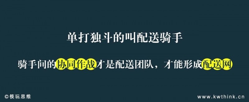 还有一点值得思考的是,单打独斗的叫配送骑手,骑手间的协同作战才是配送团队,才能形成配送网。