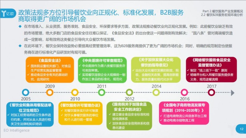 从政策角度来说,政策法规多方位引导餐饮业向正规化、标准化发展,B2B服务商在其中起到了很大的推动作用,也取得了不小的发展机遇。