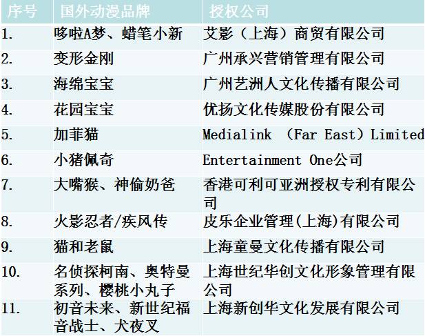 市面主流动漫授权方