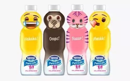 日前,雀巢纯净水英国公司推出了emoji包装设计的限量瓶装水,此次新包装共有4种表情,纯净水瓶装容量为330ml。