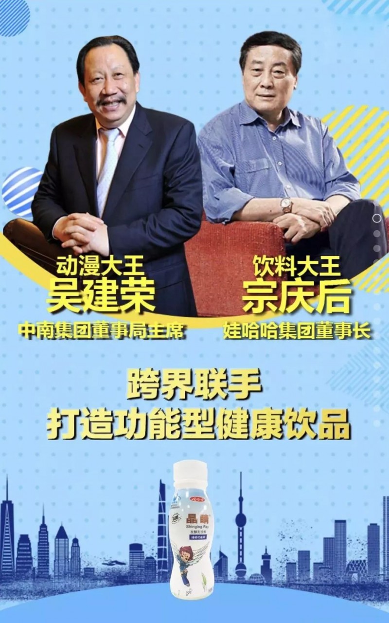 产品包装动漫人物为《天眼归来》的主角,第一部《天眼》动画片于2005年起在国内400多个电视台、海内外90多个国家播出,影响了一个时代。如今,娃哈哈晶睛发酵乳结合动漫大王吴建荣新作品《天眼归来》(目前已经在央视上映)主人公“天眼”打造新包装上市,宗庆后和吴建荣这两位浙商大咖又走到了一起。