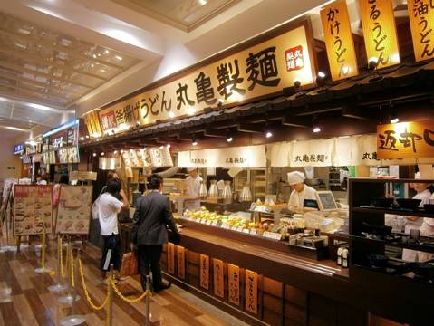 丸龟制面的全开放式厨房,厨师在顾客面前进行活面、压面、切面、煮面,演绎赞岐制面所的风情,各式小吃一字摆开,“所见即所得”刺激顾客进行消费。
