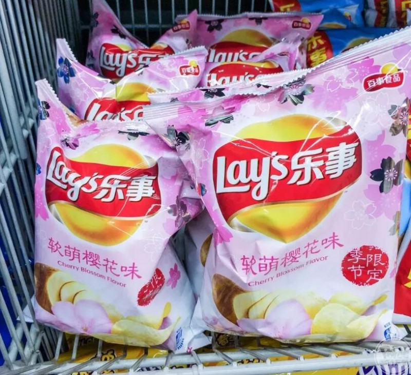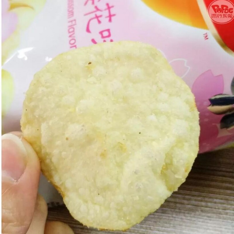 先说樱花味:微酸中有点花香味道,没有油腻感,咸味也不重,回口会有淀粉的甜味,一直不喜欢花香味的食物(觉得像在吃沐浴露),感觉乐事应该会出玫瑰啊茉莉花味的了。