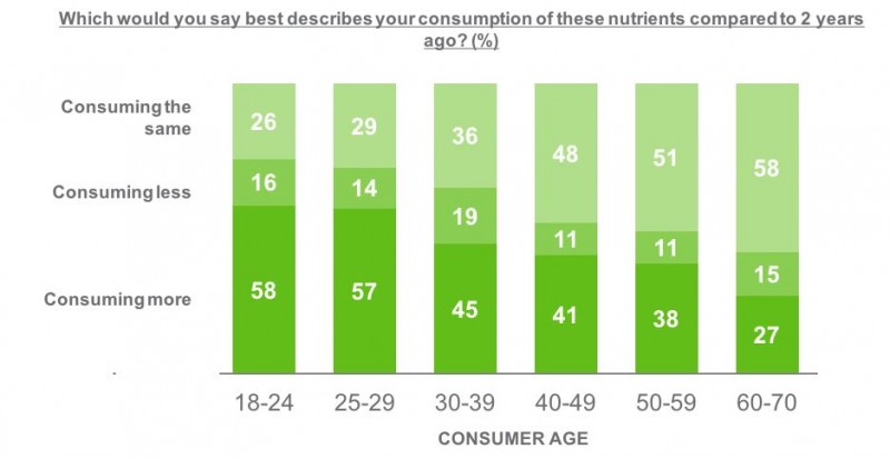 ▲ 图2、不同年龄群体对营养品消费在2年间的变化情况对比| Source: NZMP Protein Research 2017