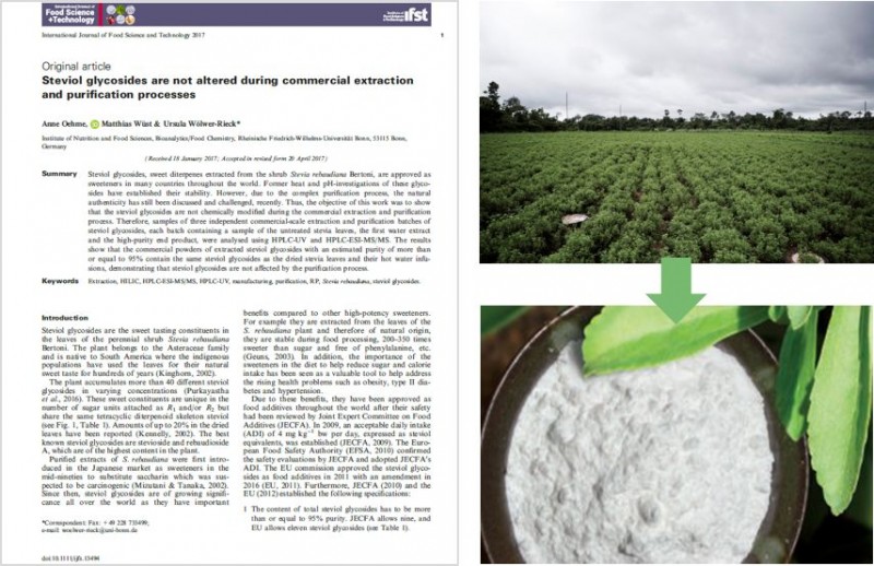 国际食品科技期刊最新的一篇研究通过实验探讨了来自植物的原始甜菊糖苷是否受到了生产高纯度甜菊糖甜味剂的典型商业萃取和提纯过程的影响,或被这一过程所改变。